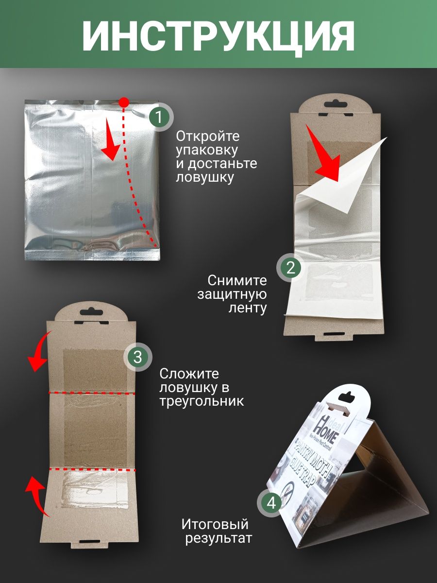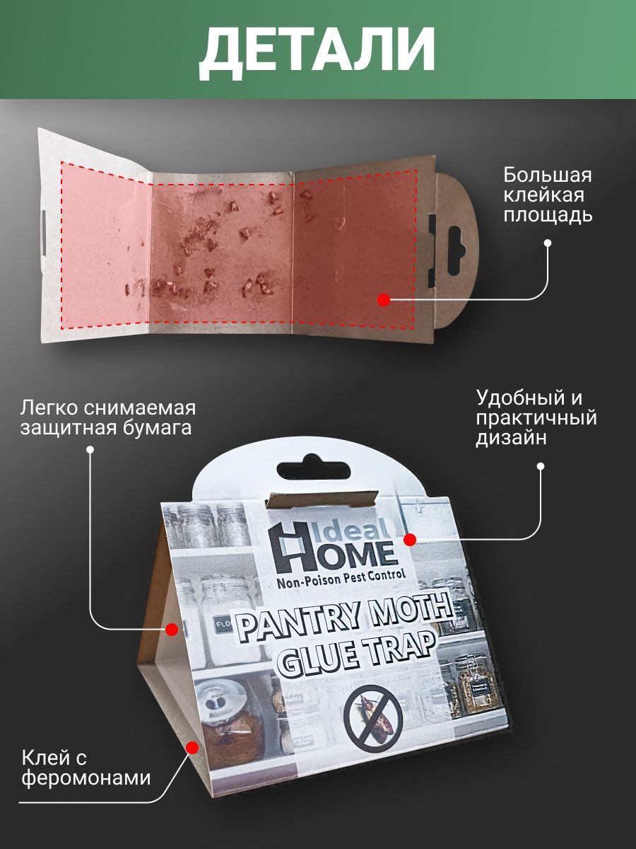 ПРИНЦИП РАБОТЫ - средство представляет собой специальный липкий плен. Особей мужского пола притягивает феромон моли, поэтому мотыльки попадают в ловушку и больше не способны участвовать в процессе размножения.